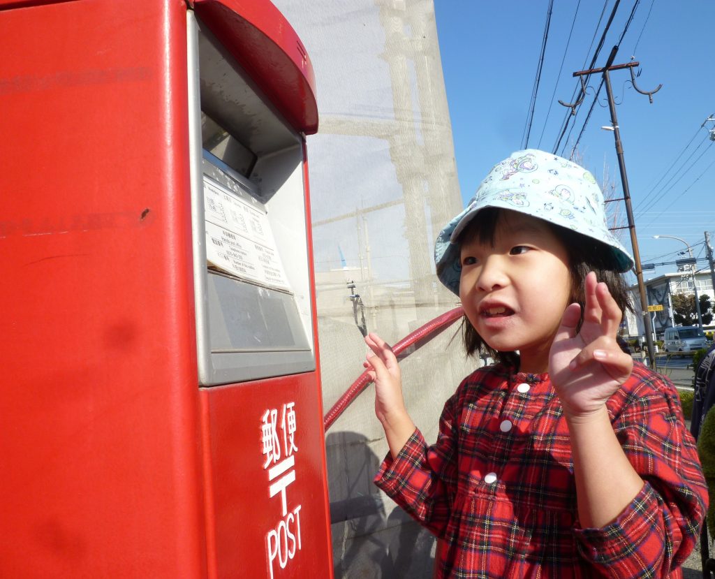 学校生活/小学部 小学部1年1組 2年1組「年賀状を出したよ」 2026年1月7日 心をこめて作った年賀状を、学校近くのポストに投函しました。「とどきますように」とドキドキしながら入れました。 ポストの前では、にこにこ笑顔がいっぱい。届く日を楽しみにしています。