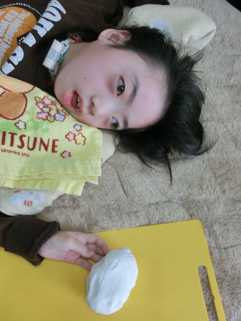 学校生活/小学部 訪問教育 今年もがんばろう! 2026年3月6日 3学期のはじめに、今年の干支「うま」「午」の書き初めをしました。指筆や柄の長い筆を書き比べ、書きたい方の筆を選んで書きました。また、粘土でだるまを作りました。粘土をこねて遊んでから、だるまの形に整えて、色を付けて、目やひげを書いたら、縁起のいいすてきなだるまたちになりました。